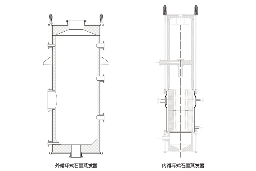 石墨闪蒸罐:由于石墨具有优良的耐腐蚀性能和传热性能及热冲击性能,常被用于物料蒸发的场合,特别适合作为闪蒸分离罐,物料收集罐,相比其它材质,具有较高的温度承受能力,耐腐蚀性能及承压能力,可承极限真空。